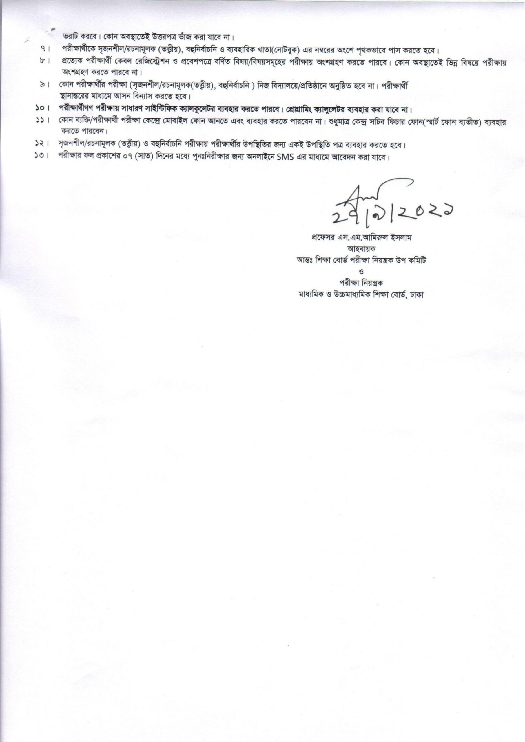 এমসিকিউ ও সৃজনশীল পরীক্ষার মাঝখানে কোনো বিরতি থাকবে না।