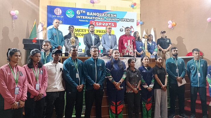 নিজস্ব প্রতিবেদক: বাংলাদেশ স্কোয়াশ ফেডারেশন আয়োজিত জোড়া আন্তর্জাতিক স্কোয়াশ প্রতিযোগিতার “ট্রফি” উন্মোচিত হয়েছে। বৃহস্পতিবার (২৪ জুলাই ২০২৫ ইং) বাংলাদেশ অলিম্পিক এসোসিয়েশনের অডিটোরিয়ামে অনুষ্ঠিত হ’ল আরএফএল ও এসিআই পৃষ্ঠপোষকতায় আন্তর্জাতিক স্কোয়াশ