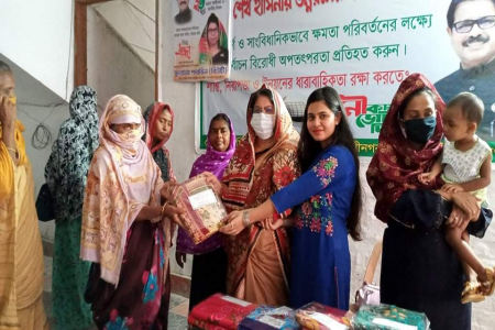 স্টাফ রিপোর্টার: পবিত্র ঈদুল ফিতর উপলক্ষে নওগাঁর রানীনগরে অসহায় দু:স্থদের মাঝে শাড়ি বিতরণ করা হয়েছে। আজ বুধবার রানীনগর উপজেলার ঝিনা গ্রামে ও সদরে প্রয়াত এমপির হাউজে প্রায় ১০০ জন অসহায়