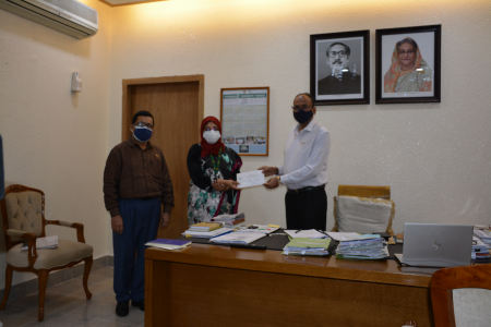 দুর্যোগ ব্যবস্থাপনা ও ত্রাণ মন্ত্রণালয়ের সাবেক উপসচিব মরহুম আবুল খায়ের মোঃ মারুফ হাসানের পরিবারের অনুকূলে প্রধানমন্ত্রীর ত্রাণ ও কল্যাণ তহবিল থেকে আর্থিক অনুদান হিসেবে ২৫ লক্ষ টাকার সঞ্চয়পত্র হস্তান্তর করা