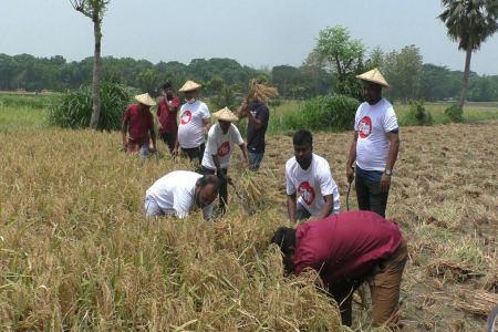 ঝিনাইদহ প্রতিনিধি ॥ ঝিনাইদহে করোনা প্রাদুর্ভাবে অসহায় দরিদ্র এক কৃষকের ধান কেটে দিয়েছে যুবলীগের নেতাকর্মীরা। শনিবার সকাল থেকে দুপুর পর্যন্ত সদর উপজেলার ছোট কামারকুন্ডু গ্রামের কৃষক গোলাম মোস্তফার জমির ধান