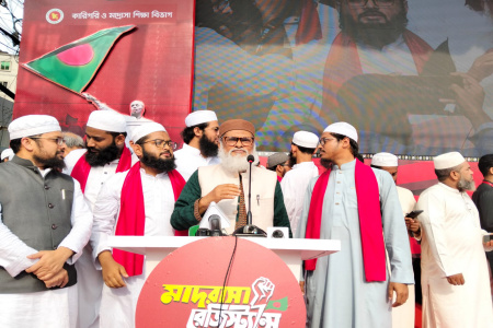 ধর্ম উপদেষ্টা ড. আ ফ ম খালিদ হোসেন বলেছেন, মুক্তি সংগ্রামের ইতিহাসে এদেশের মাদরাসার শিক্ষার্থীদের ভূমিকা স্বর্ণাক্ষরে লেখা থাকবে। আজ বিকালে রাজধানীর যাত্রাবাড়ীর উত্তর কাজলায় জামিয়া মাহমুদিয়া মাদরাসা প্রাঙ্গণে মাদরাসা