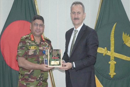 বাংলাদেশে আধুনিক যুদ্ধসরঞ্জাম তৈরি এবং প্রতিরক্ষা প্রযুক্তি উন্নয়নে কারিগরি ও কৌশলগত সহায়তা দেওয়ার আশ্বাস দিয়েছেন তুরস্কের প্রতিরক্ষাশিল্প সংস্থার সচিব অধ্যাপক হালুক গরগুন। মঙ্গলবার (৮ জুলাই) সেনাবাহিনী প্রধান জেনারেল ওয়াকার-উজ-জামানের সঙ্গে