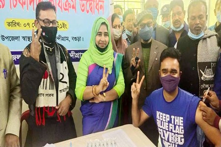 অসীম কুমার, নন্দীগ্রাম (বগুড়া) প্রতিনিধিঃ বগুড়ার নন্দীগ্রামে কোভিড-১৯ টিকাদান কার্যক্রম উদ্বোধন করা হয়েছে। ৭ ফেব্রুয়ারী বেলা ১১ টায় উপজেলা স্বাস্থ্য কমপ্লেক্সে কোভিড-১৯ টিকাদান কার্যক্রম উদ্বোধন করেন উপজেলা নির্বাহী অফিসার শারমিন